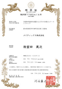 令和7年12月5日付に特許を取得いたしましたので、お知らせします。